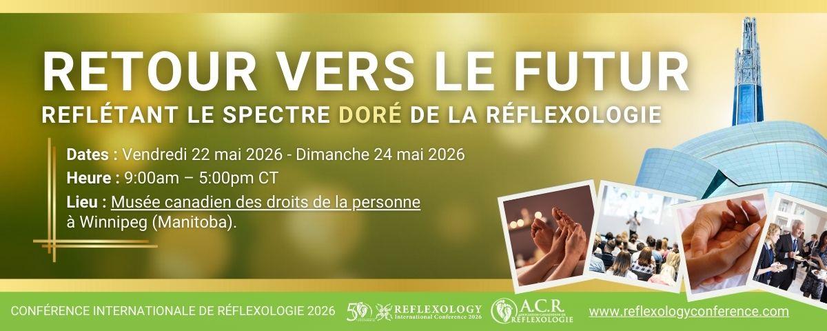 2 Keynote Speakers, 3 Panel Discussions, 8 Seminar Speakers, and 1 amazing weekend of learning, networking, and fun!Dive deeper with our series of post-conference workshops!To learn more visit: www.reflexologyconference.com******************************************************2 Orateurs principaux, 3 tables rondes, 8 séminaires et une incroyable fin de semaine d'apprentissage, de réseautage et des plus agréables !Explorez en profondeur avec notre série d'ateliers après-conférence !Pour en savoir plus, visitez le site : www.reflexologyconference.comwww.reflexologyconference.com