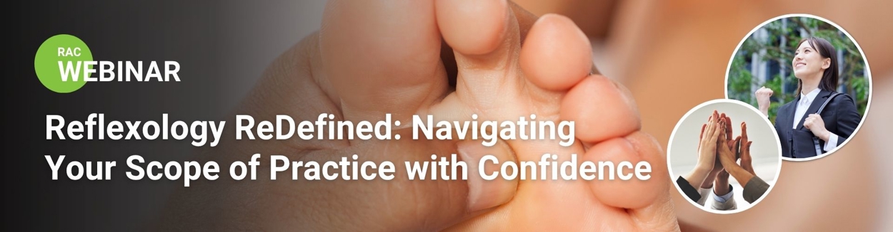ReDefined: Navigating Your Scope of Practice with Confidence 1:00pm - 3:00pm CT | Hosted by: Ines Hardtke, Professional Development Manager&Laura Marrast, Director of Operations Join us for Reflexology ReDefined: Navigating Your Scope of Practice with Confidence, a focused session designed to help reflexology therapists understand and apply the RAC Scope of Practice in everyday work. Learn how clear boundaries support ethical, safe, and effective reflexology therapy — and discover ways to elevate your client care through professional clarity and confidence. Who: RAC MembersCost: FreeThis webinar will be recorded! Stronger Standards, Greater Confidence — Reserve Your Spot Today!